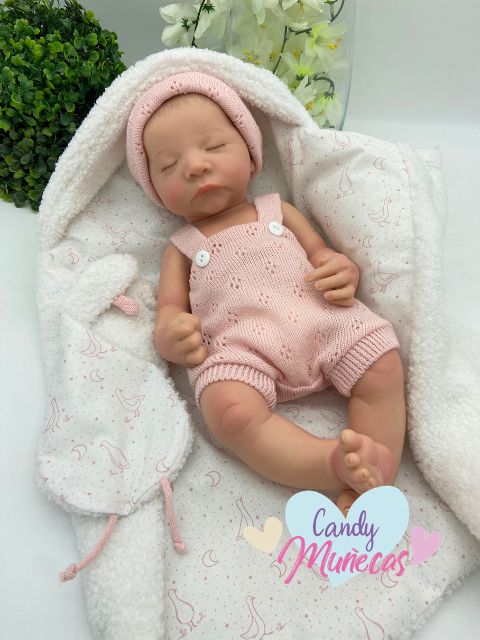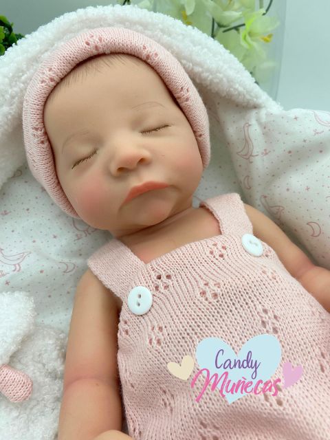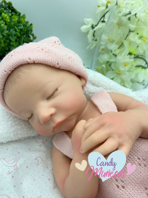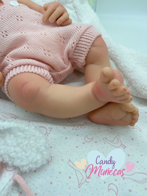 Se trata de una muñeca reborn sexada niña, cuidada hasta el más mínimo detalle. Su pelo está pintado a mano y presenta acabados realistas como rojeces en la piel, delicadas uñitas y matices que aportan profundidad y autenticidad a su aspecto.